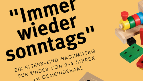 "Immer wieder sonntags" ist ein Angebot für Familien mit Kindern im Alter von 0-6 Jahren. Gemeinsam können die Familien in unserem Gemeindesaal einen Nachmittag verbringen.