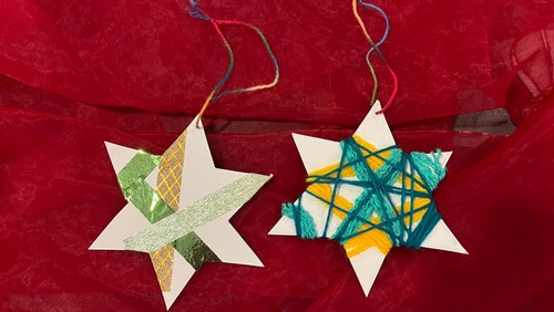 Zur Weihnachtszeit basteln wir Wickelsterne zum Aufhängen